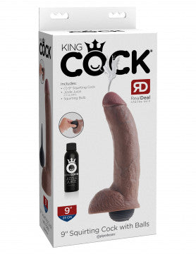 King Cock 9 Inch Squirting Cock With Balls - Brown